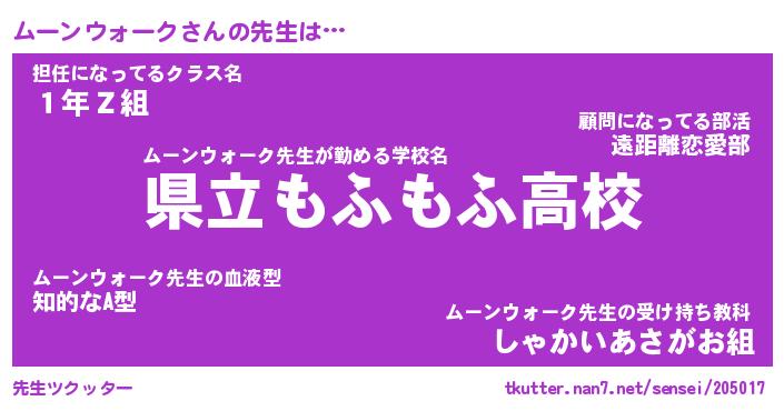 | 男性向けラノベタイトル風あだ名 | 『ムーンウォークの憂鬱』 |