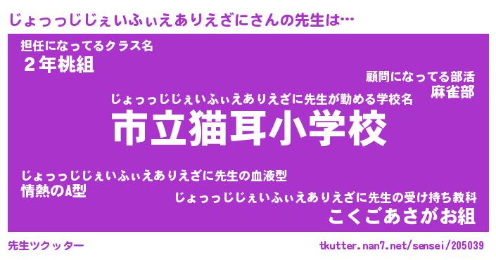 | 欧米人風あだ名 | 『マイケルじょっっじじぇいふぃえありえざに』 |
