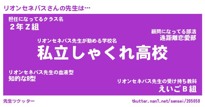 | 意味不明あだ名 | 『ペロリンリオンセネバス』 |