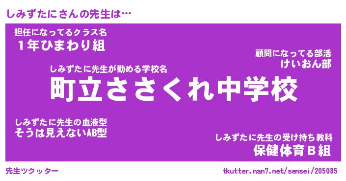 | ヒーロー風カッコイイあだ名 | 『スーパーシミズタニ』『銀牙騎士シミ』 |