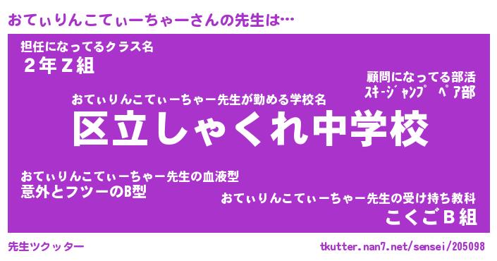 | 肩書あだ名 | 『おてぃりんこてぃーちゃー御曹司』 |