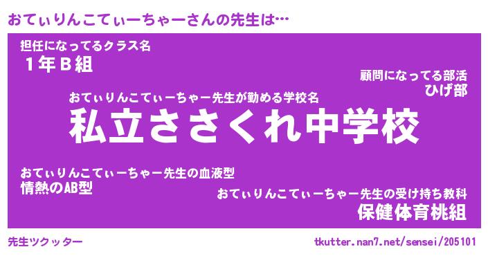 | 意味不明あだ名 | 『ペロリンおてぃりんこてぃーちゃー』 |