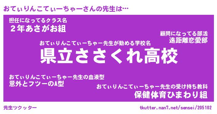 | ツイッター | おてぃりんこてぃーちゃーさんのツイッターID『tsukushi_kun』 |
