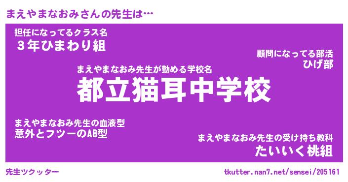 | ポケモン風あだ名 | 『マエチュウ』『マエヤダネ』 |