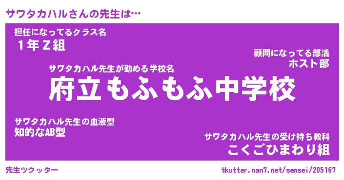 | 肩書あだ名 | 『サワタカハル店長』『サワタカハル班長』 |
