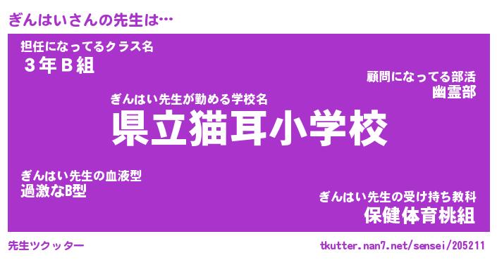 | 意味不明あだ名 | 『ペロリンぎんはい』『永久保存ぎんはい』 |