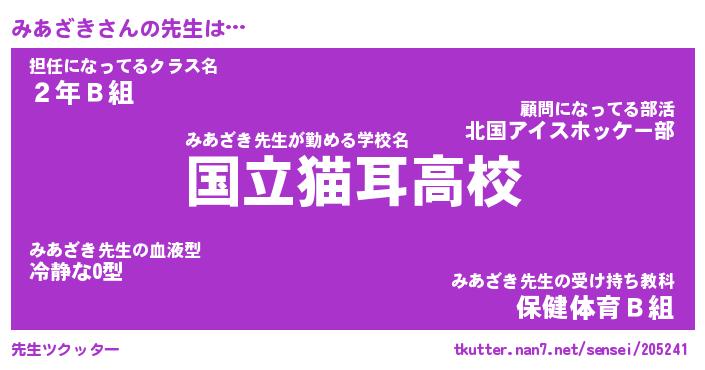 | ヘコむあだ名 | 『みあにー』『牛乳』『みあお』 |