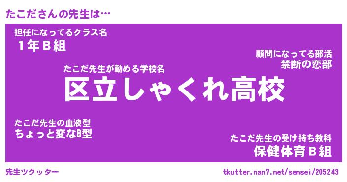 | 意味不明あだ名 | 『ペロリンたこだ』『たこだフォーエバー』 |