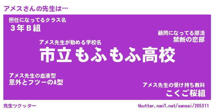 | ファンタジー風あだ名 | 『アメフェル』『エターナルアメスー』 |
