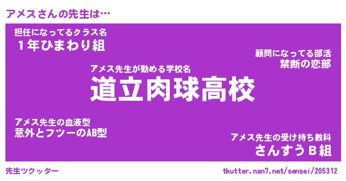 | ヘコむあだ名 | 『アメふぇ~』『牛乳』『アメお』 |