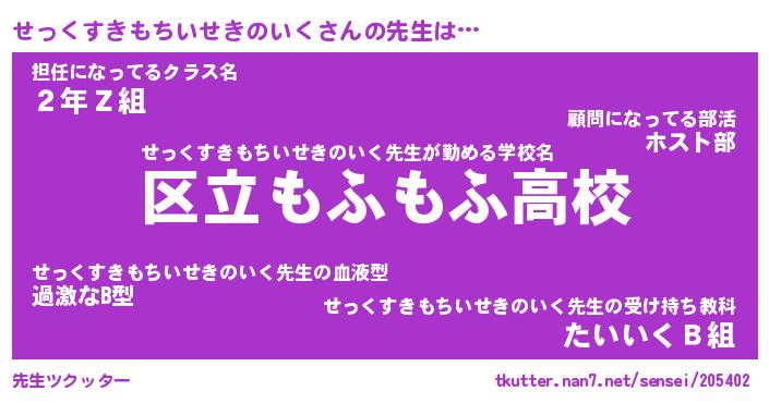 | 意味不明あだ名 | 『ペロリンせっくすきもちいせきのいく』 |