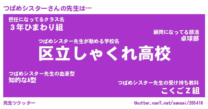 | 恥ずかしいあだ名 | 『プリティーつばめシスター』『つばちん』 |