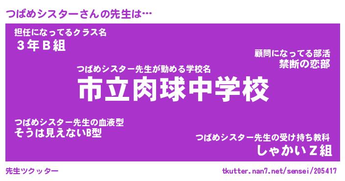 | 自動車の名前っぽいあだ名 | 『プリツバ』『ツスラー』『ツント』 |