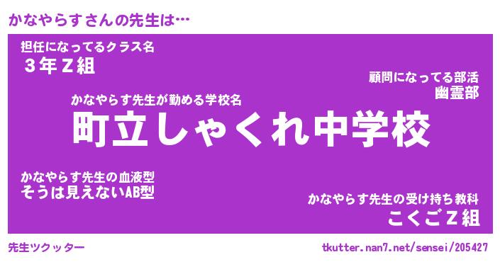 | ファンタジー風あだ名 | 『カナフェル』『エターナルカナヤラスー』 |