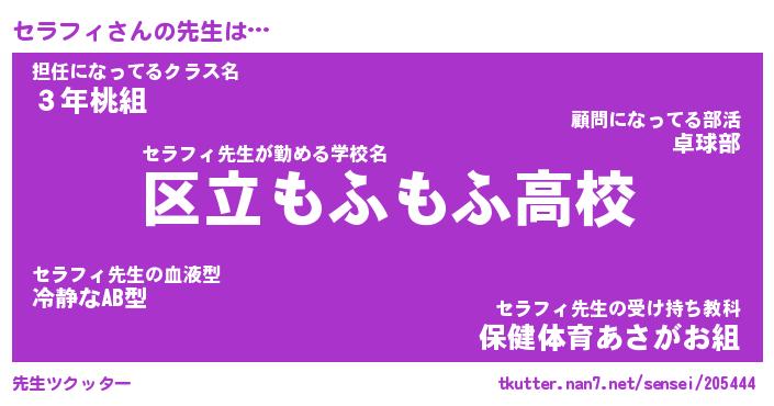 | ファンタジー風あだ名 | 『セラフェル』『エターナルセラフィー』 |