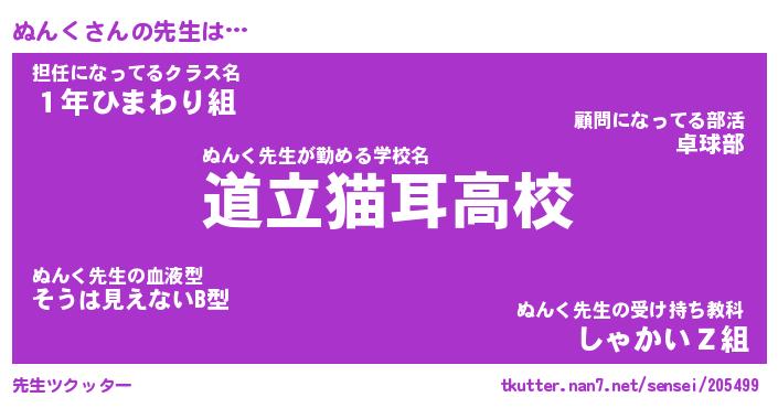 | ヘコむあだ名 | 『ぬんにー』『レバニラ』『ぬんっ子』 |