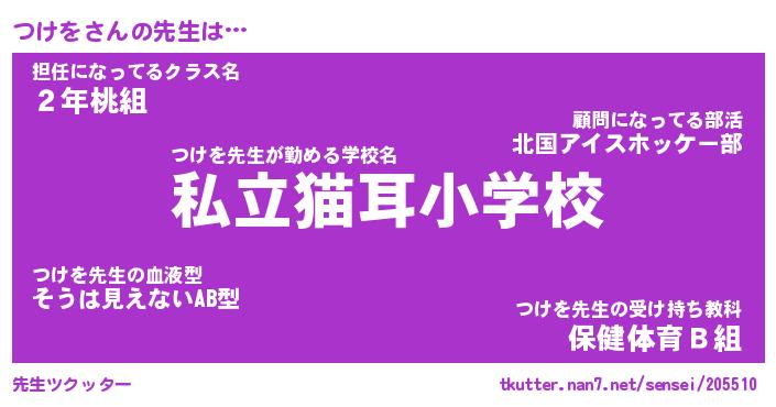 | ポケモン風あだ名 | 『ツケチュウ』『ツケヲダネ』 |