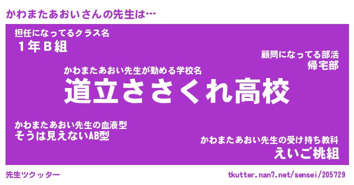 | ツイッター | かわまたあおいさんのツイッターID『katatsumuri_kun』 |