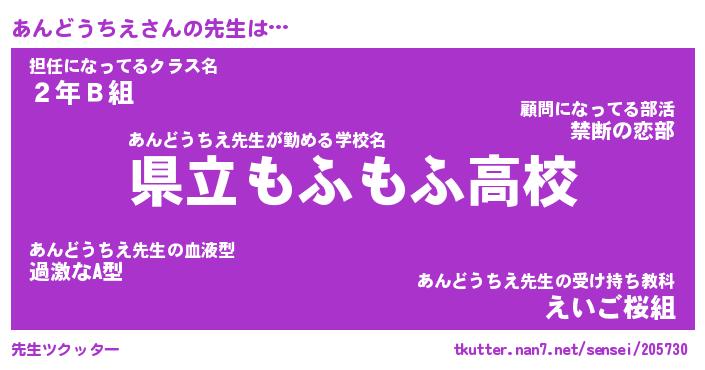 | 肩書あだ名 | 『あんどうちえ店長』『あんどうちえ担任』 |