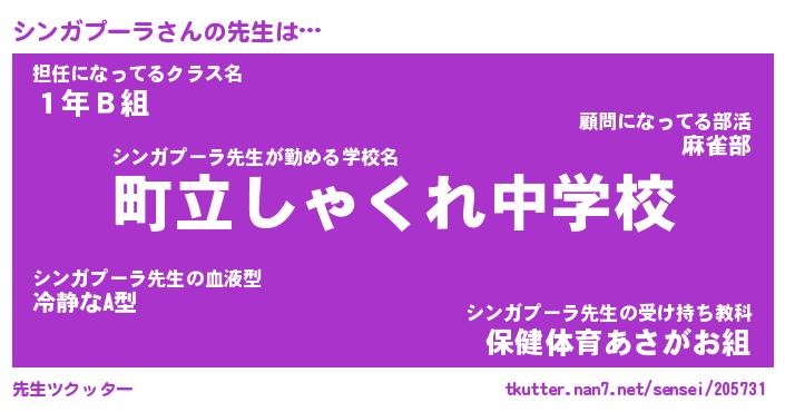 | ヒーロー風カッコイイあだ名 | 『スーパーシンガプーラ』『幻影騎士シン』 |