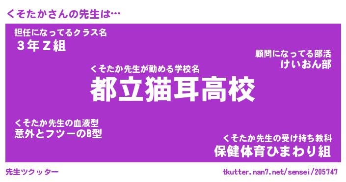 | 意味不明あだ名 | 『ペロリンくそたか』『永久保存くそたか』 |