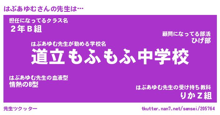| ヘコむあだ名 | 『はぶにゅー』『つくし』『はぶっ子』 |