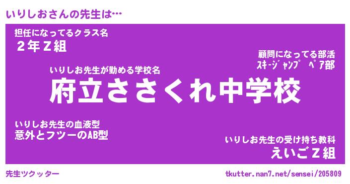| 意味不明あだ名 | 『ペロリンいりしお』『永久保存いりしお』 |