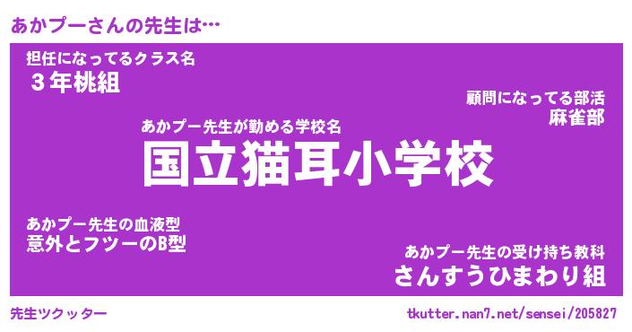 | 意味不明あだ名 | 『ペロリンあかプー』『永久保存あかプー』 |