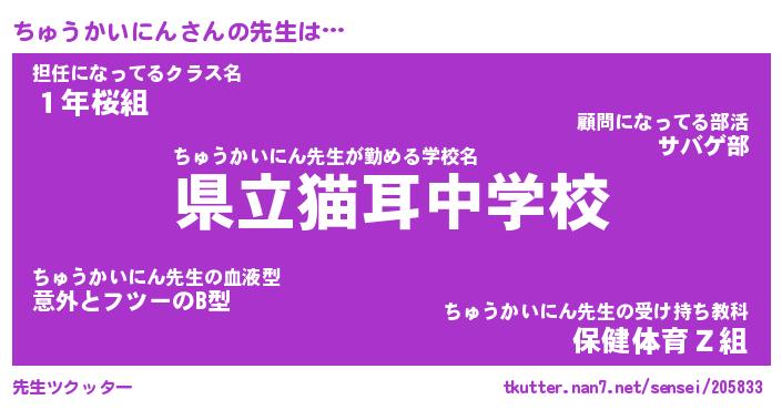 | ヘコむあだ名 | 『ちゅにー』『牛乳』『ちゅ太郎』 |