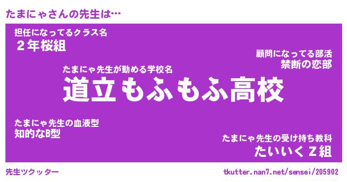 | ファンタジー風あだ名 | 『タマフェル』『エターナルタマニャー』 |