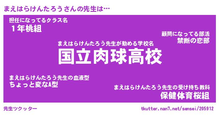 | 胡散臭い通販商品みたいなあだ名 | 『必ず成功するブレスレット…その名も「まえはらけんたろう」』 |