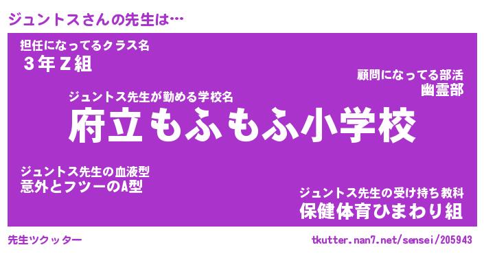 | 肩書あだ名 | 『ジュントス店長』『ジュントス総理大臣』 |