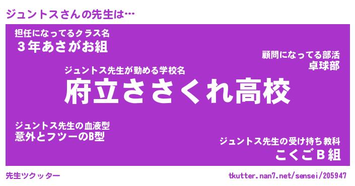 | ヒーロー風カッコイイあだ名 | 『スーパージュントス』『暗黒騎士ジュ』 |