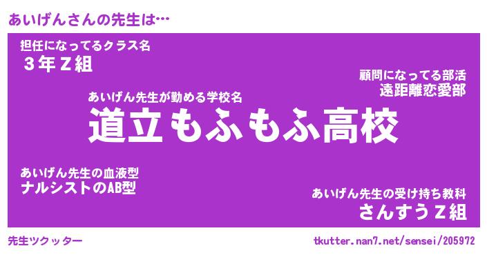 | 意味不明あだ名 | 『ペロリンあいげん』『永久保存あいげん』 |