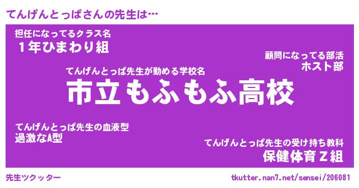 | 男性向けラノベタイトル風あだ名 | 『てんげんとっぱの憂鬱』 |