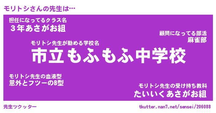 | 意味不明あだ名 | 『ペロリンモリトシ』『永久保存モリトシ』 |