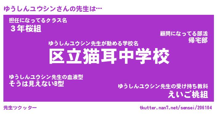 | ポケモン風あだ名 | 『ユウチュウ』『ユウシダネ』 |