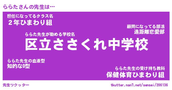 | 肩書あだ名 | 『ららた社長令嬢』『ららた大統領』 |