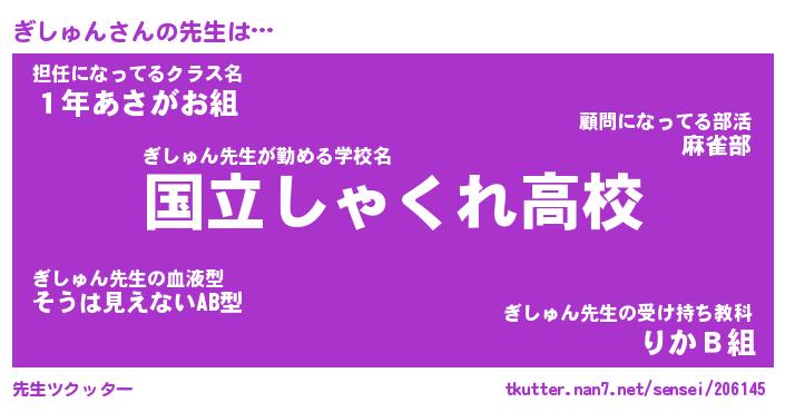 | 伝説のあだ名 | 『伝説のスナイパーぎしゅん』 |