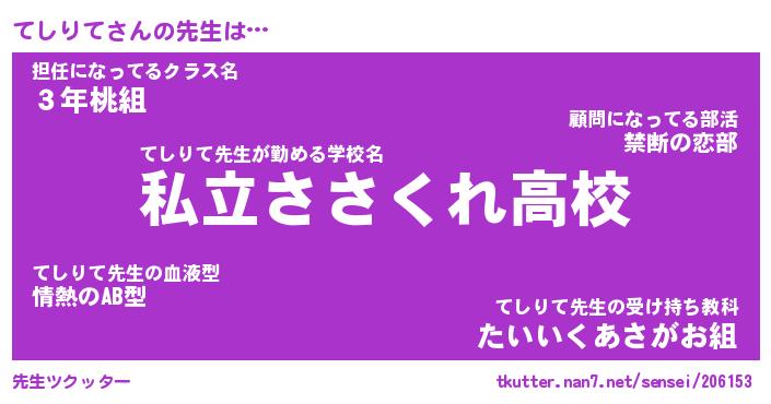 | 意味不明あだ名 | 『ペロリンてしりて』『永久保存てしりて』 |