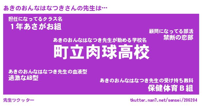 | ヘコむあだ名 | 『あきふぇ~』『つくし』『あきお』 |
