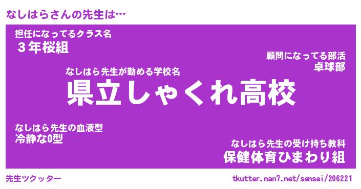 | ヒーロー風カッコイイあだ名 | 『スーパーナシハラ』『炎刃騎士ナシ』 |