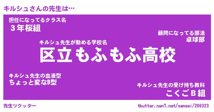 | 意味不明あだ名 | 『ペロリンキルシュ』『永久保存キルシュ』 |