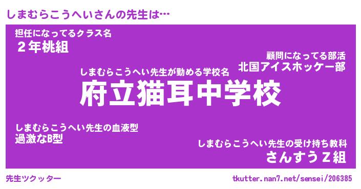 伝説のあだ名 | 『封印されし竜騎士しまむらこうへい』 |
