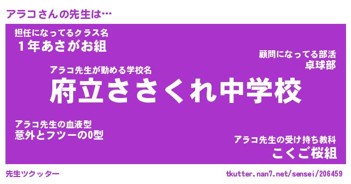 | 意味不明あだ名 | 『ペロリンアラコ』『アラコフォーエバー』 |
