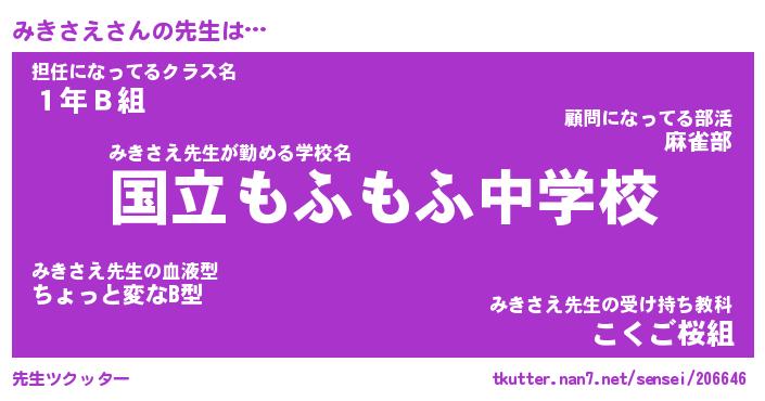 | 意味不明あだ名 | 『ペロリンみきさえ』『永久保存みきさえ』 |