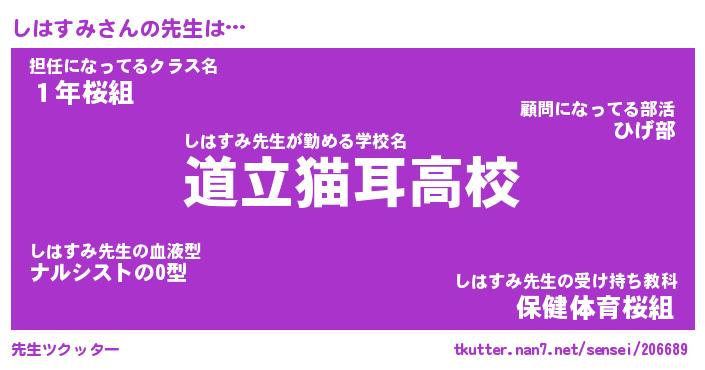 | 意味不明あだ名 | 『ペロリンしはすみ』『永久保存しはすみ』 |