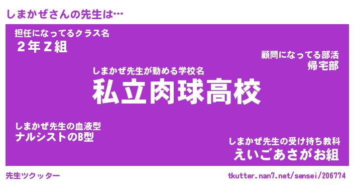 | ヘコむあだ名 | 『しまふぇ~』『豆乳』『しまっ子』 |