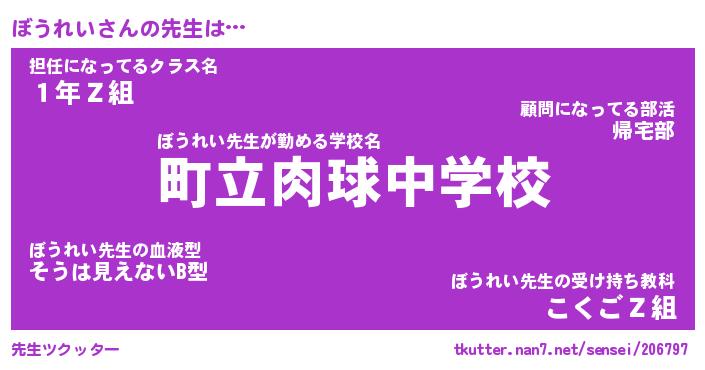 | 意味不明あだ名 | 『ペロリンぼうれい』『永久保存ぼうれい』 |