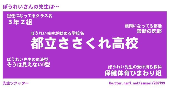 | 意味不明あだ名 | 『ペロリンぼうれい』『永久保存ぼうれい』 |